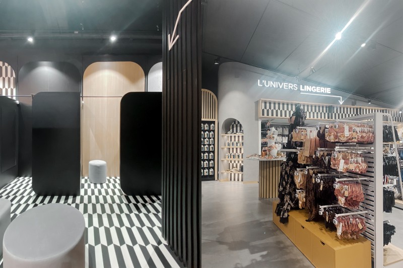 Une boutique de spécialistes aux lignes épurées proposant une sélection diversifiée de vêtements, accessoires et lingerie à prix E.leclerc dans un écrin moderne et chaleureux.